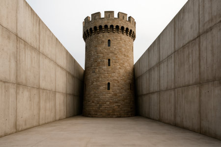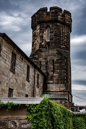 Vigilance structure of an abandoned jail on a cloudy day