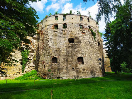 Berezhany Castle, residence of the Sieniawski magnate family in small town Berezhany in Ternopil region, Ukraine. Tourist destination. Ruins of the 16th century fortification in summer day.