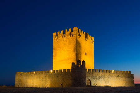 Tiedra's castle in Valladolid, Spain, in the blue hour, to the late afternoon