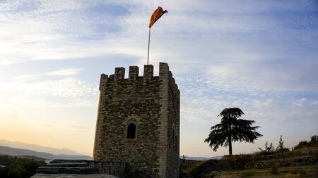 flag of Republic of North Macedonia at the Fortress of Skopje