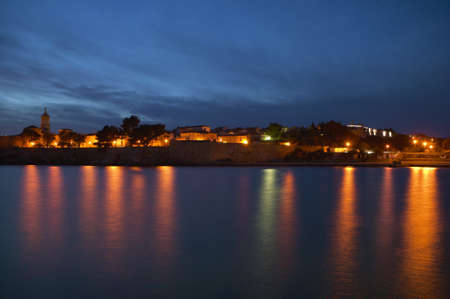 The Old Town of Budva in Montenegro. View of the fortress in the lights at night