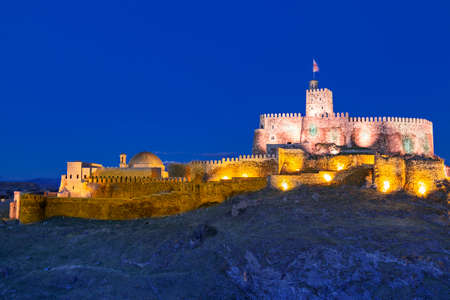Ancient fortress during the evening sunset in the mountains. Architecture, landscape