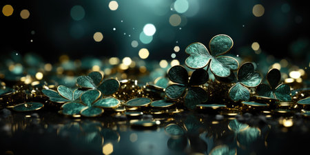 Green clover leaves and gold coins for St. Patrick's Day