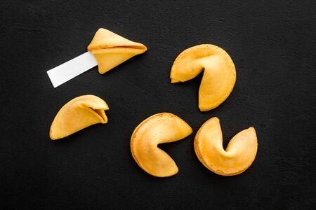fortune cookies on black background.Top view