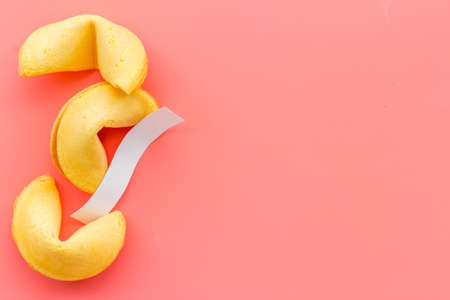 Fortune cookie on a pastel pink background. Chinese tradition Isolate