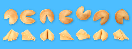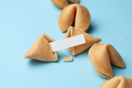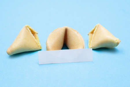 Chinese fortune cookies. Cookies with empty blank inside for prediction words. Blue background