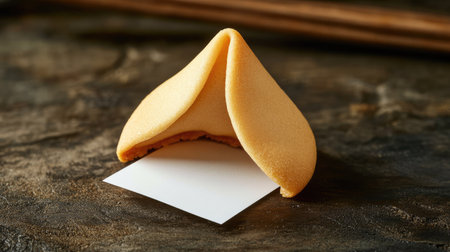 A close-up of a Chinese fortune cookie with a blank paper slip. No people, copy space.