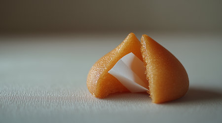 Fortune cookie revealing a fortune message with a positive note displayed on a white background
