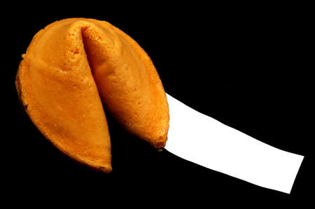 Open fortune cookie with fortune sticking out