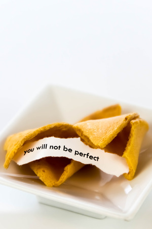 open fortune cookie with strip of white paper - YOU WILL NOT BE PERFECT