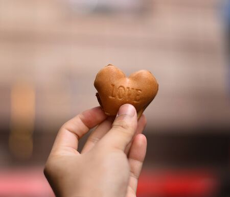 Heart shaped waffles in hand