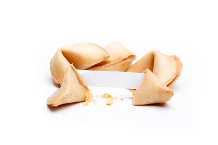 Fortune cookies on a white background. Fortune cookies close up.