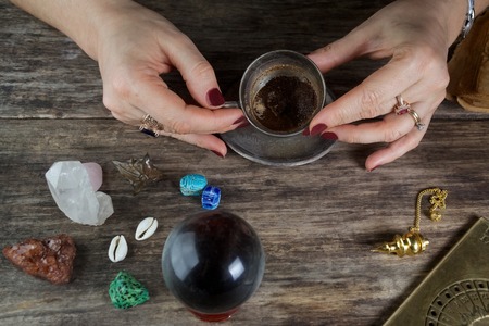 Witch - fortune teller reading fortune from coffee grounds