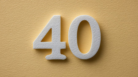 Colorful number 40 on a blue background, vibrant and celebratory theme.