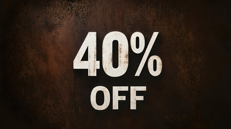 White '40% OFF' Promotional Sign on a Dark Brown Background with Copy Space