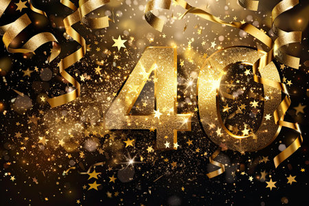 Glowing Futuristic Number 40 with Abstract Network Design Against a Blurred Particle Background.