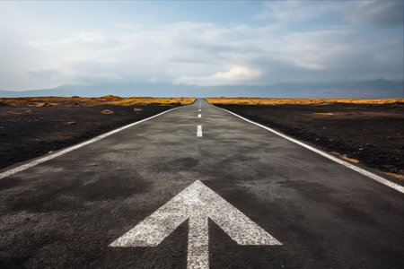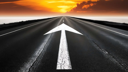 Endless Roadway with Directional Arrow Towards Horizon
