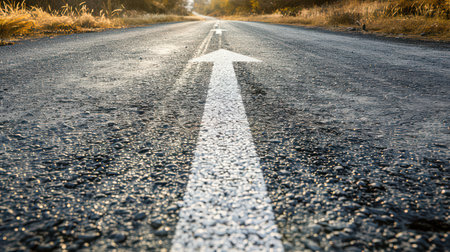 A straight road with an arrow painted on it leading to the horizon, symbolizing goal setting and achievement - ai