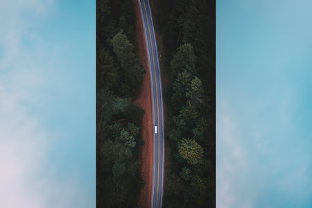 Stunning photograph of a deserted road across a thick forest