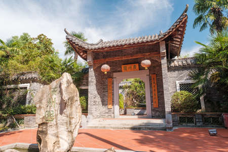 Guangzhou, China-September 17, 2019: Traditional Chinese shops and buildings in Lingnan Impression Park, a famous tourist destination in Guangzhou.