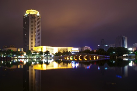 Xiamen city center, city skyline at dusk
