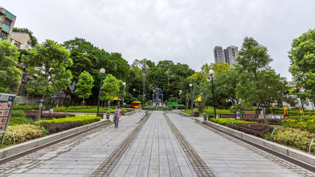 Macao, FEB 1 2014 - Sunny exterior view of the Camoes Garden