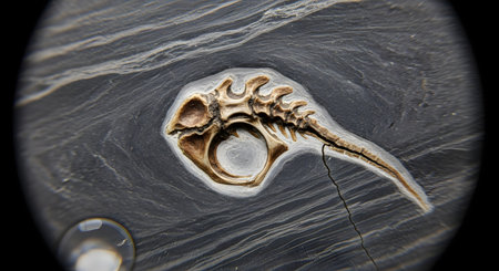 Detailed macro shot of fossil imprints on a weathered limestone rock, capturing the texture and timeless essence of Earth's ancient past.