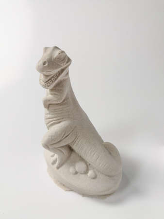 T-Rex dinosaur model molded from gypsum (plaster) isolated on the white background