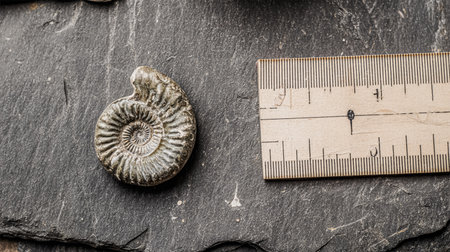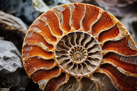 artistic macro shot of ammonite fossil details, created with generative ai