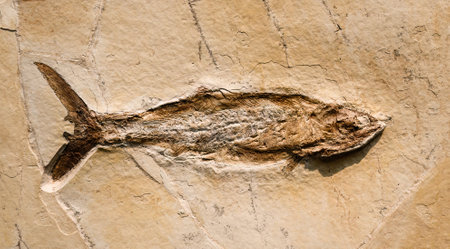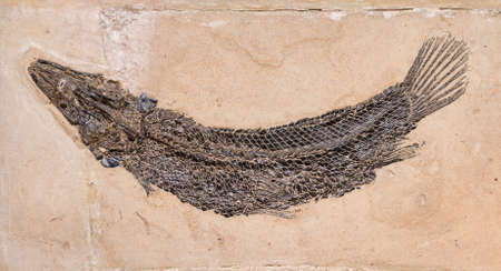 Fish fossil on sand stone background