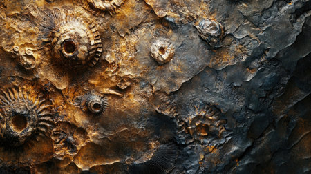 Detailed macro shot of fossil imprints on a weathered limestone rock, capturing the texture and timeless essence of Earth's ancient past.
