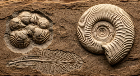 AI Generated. Fossilized impressions of ancient marine life discovered in sediment from a geological site