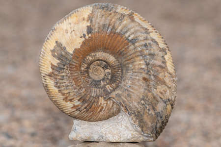 Ammonite prehistoric fossil on the surface