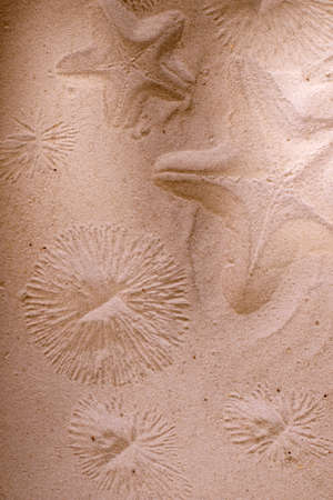 Starfish trace on a sand surface. Summerbackground good for Seasonal Sale or Tour Trip announce.