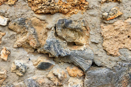 This close-up image showcases beautifully fossilized sea creatures, revealing intricate textures and details. Perfect for nature and geology enthusiasts.