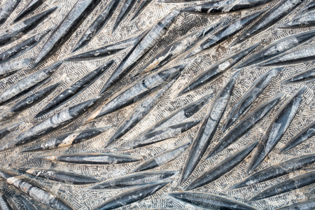 Closeup of an Orthoceras Fossil Slab with Fossilised Squid found in Morocco.