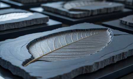 fossilized fern leaf detail in sedimentary rock, created with generative ai