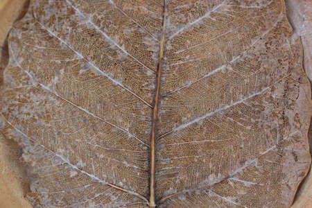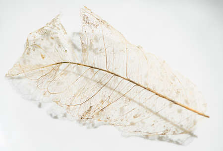 Close-up Beautiful Dry leaves, Skeleton leafs on white background with copy space