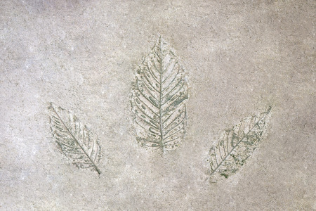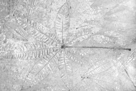 The Imprint leaf vegetable on cement floor background,ground texture background