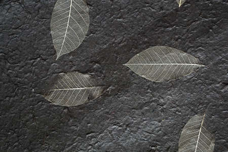 Fossilized leaf. Selective focus. Close-up, background and texture