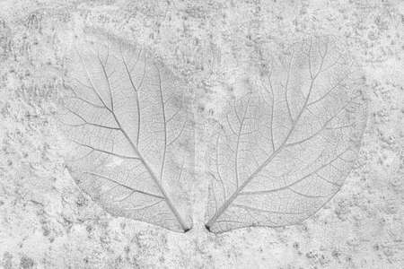 Tree leaf of tropical plant in printed on gray concrete surface for background