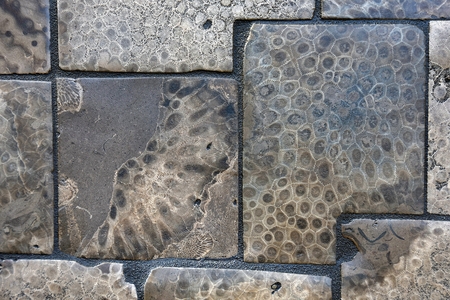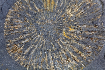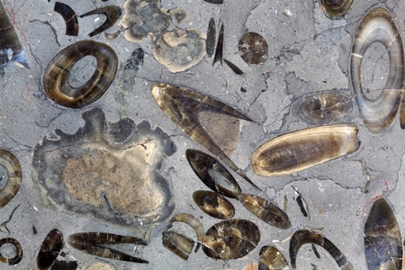 close-up of fossilized cephalopods. Devonian. Background texture, close-up