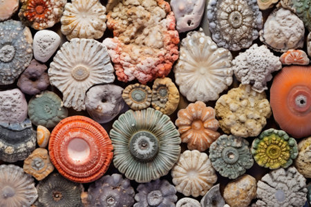 Captivating view of fossilized sea creatures embedded in a rock surface, showcasing intricate details and vibrant colors that reflect ancient marine environments.