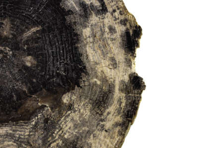 Piece of petrified wood from Patagonia - older than 65 million years - on a black background. Closeup