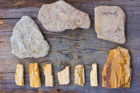 Petrified teak wood, fossil texture in shallow focus, natural background