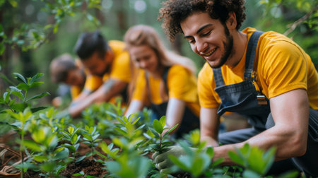 Volunteering Protection of environment and nature ecology concept. Group of volunteer plant a tree Plant trees water them till the soil. Nature for sustainable environment.Global warming concept.