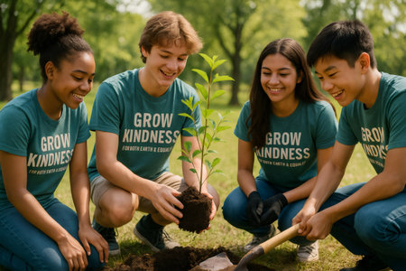 people helping planting tree in nature for save earth.