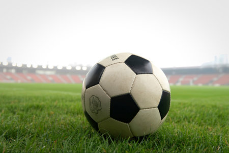 Soccer Football on Grass, Sport Concept and Idea / for background, wallpaper, texture. Standard Ball Black and White.