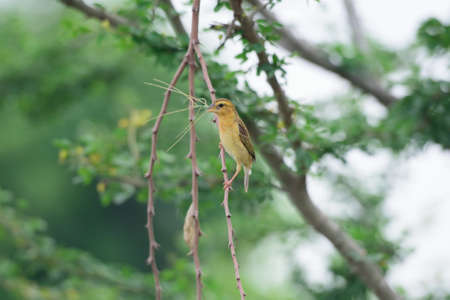 A male of Asian Golden Weaver is building its nest
