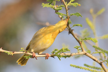 Weaver bird resting on a black acacia tree in Masai Mara Park in northwestern Kenya
